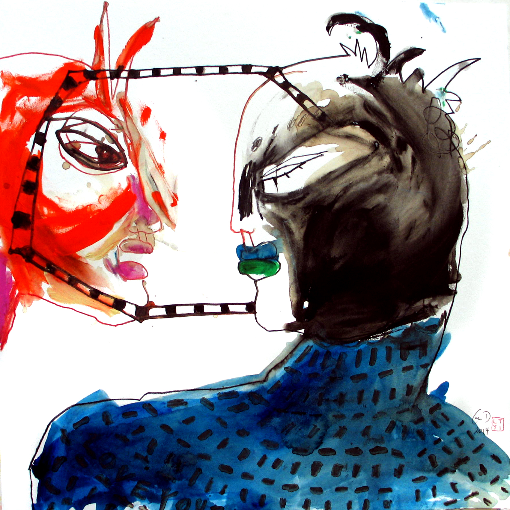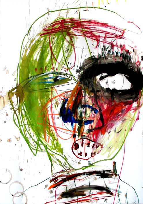 einmal über dem papier beginnt das nehmen. ich nehme die impulse auf, die mein körper in seiner geste ausdrückt, die farbe, die sich über dem blatt verteilt. formen entstehen, auf die ich reagiere.