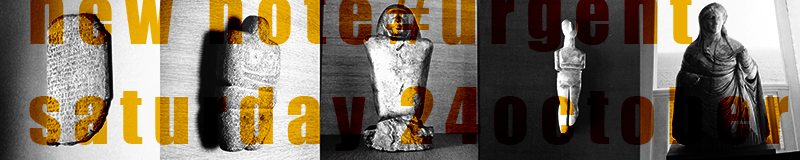 schrift auf stein, links aussen, rechts aussen der torso einer frau in ein gewand gehüllt, die arme aktiv nach oben gerichtet. die beiden rechts und links daneben, zwei figurinen mit verschränkten armen. als würden sie sich in andacht selbst umarmen. die zentrale figur körperlos. der blick kraftvoll nach vorn gerichtet.