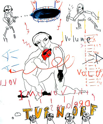 meinen kopf zur ruhe bringen, nein, ihn überlisten, stille herstellen durch ablenkung. trance. musik. bewegung. gleichzeitig der totale fokus auf das blatt.